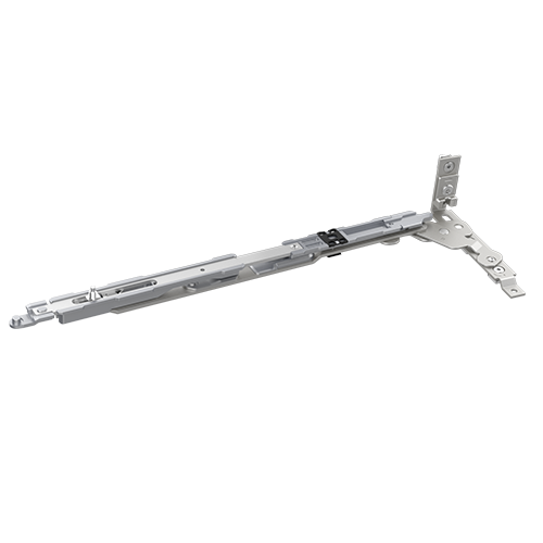 适用系统:内平开下悬窗 材质:不锈钢、锌合金 表面处理:真空喷砂+纳米合金镀金层600h 技术参数:开启90° 与XYHDX100-L/R配合使用 适用窗槽宽470-750mm