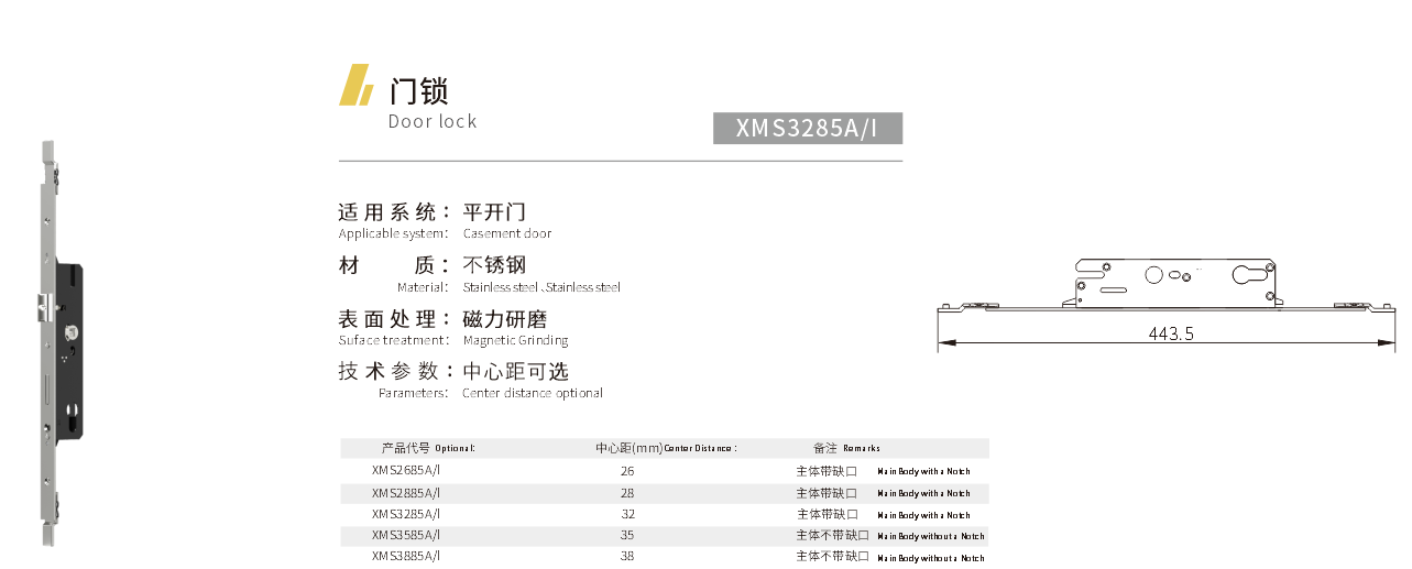 适用系统:平开门 材质:不锈钢 表面处理:磁力研磨 技术参数:中心距可选
