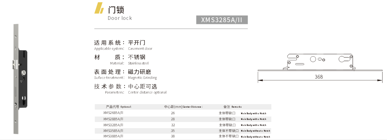 适用系统:平开门 材质:不锈钢 表面处理:磁力研磨 技术参数:中心距可选