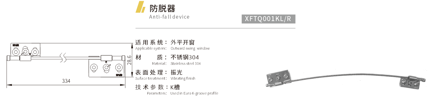 适用系统:外平开窗 材质:不锈钢304 表面处理:振光 技术参数:K槽