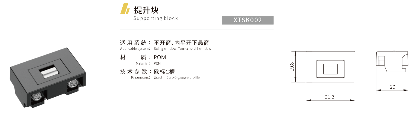 适用系统:平开窗、内平开下悬窗 材质:POM 技术参数:欧标C槽